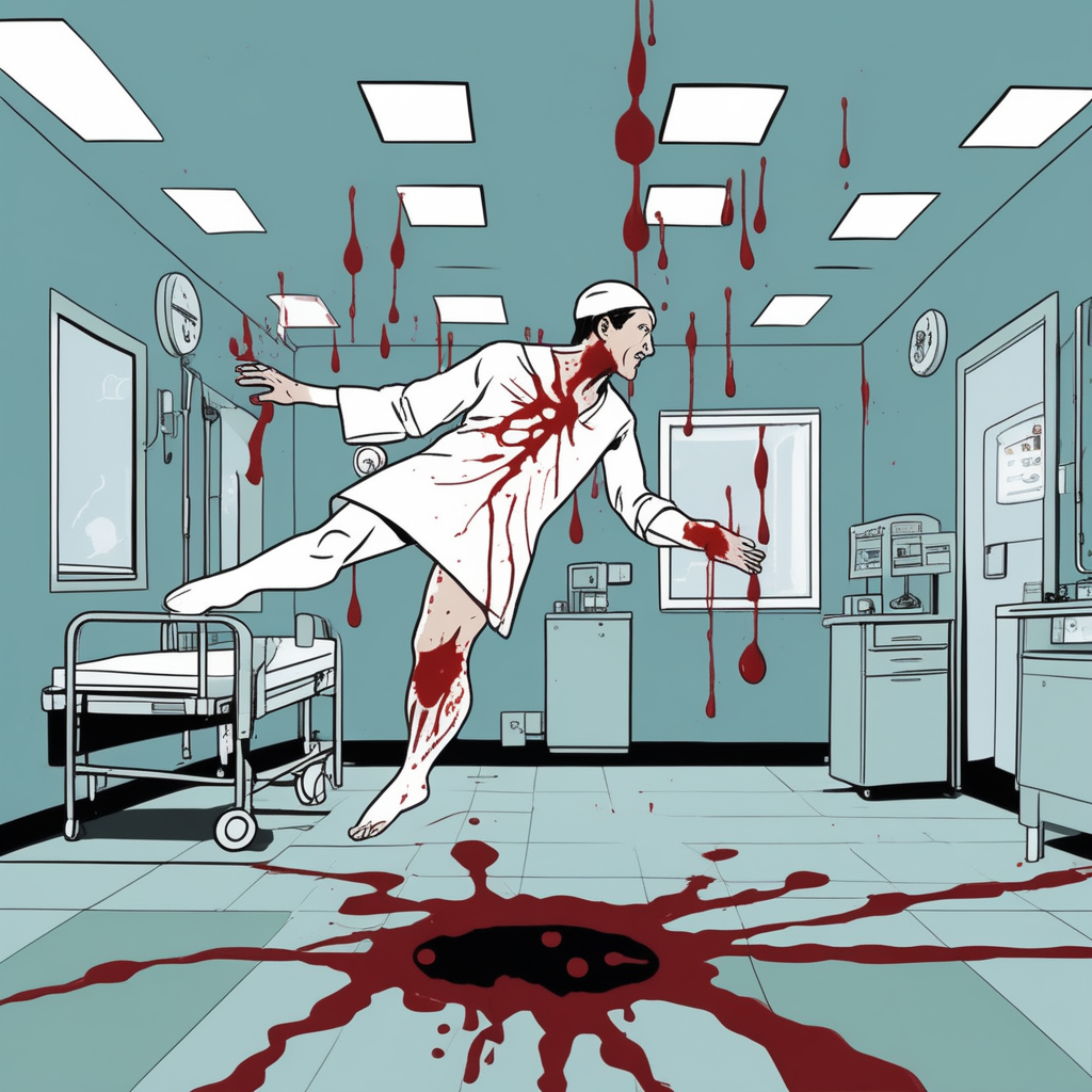 Bleeding (피) and escaping (벗어나기) by spinning around a central point!