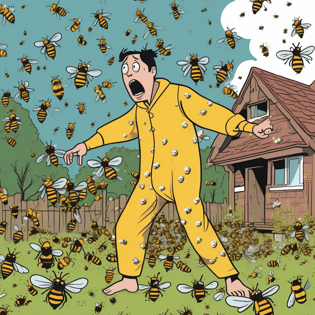 Completely defenseless against the bee swarm! A truly vulnerable situation!