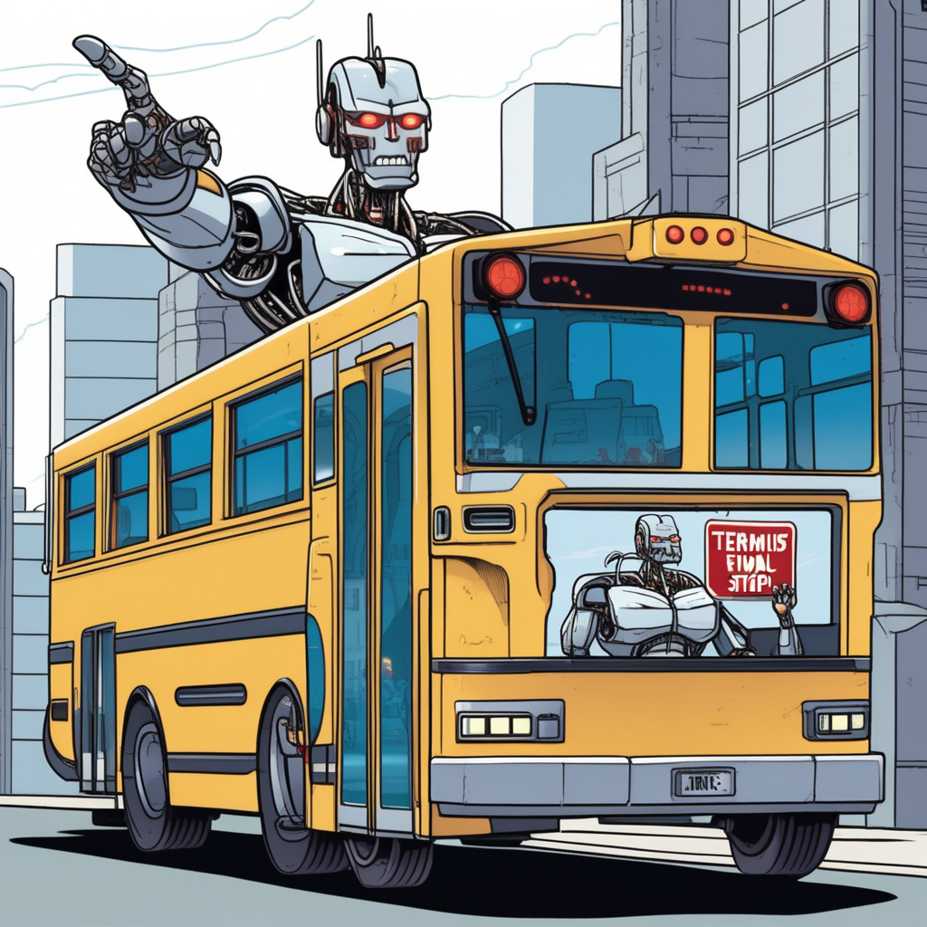 터미네이터가 버스 종점에서 '여기가 터미너스(종점)다!'
