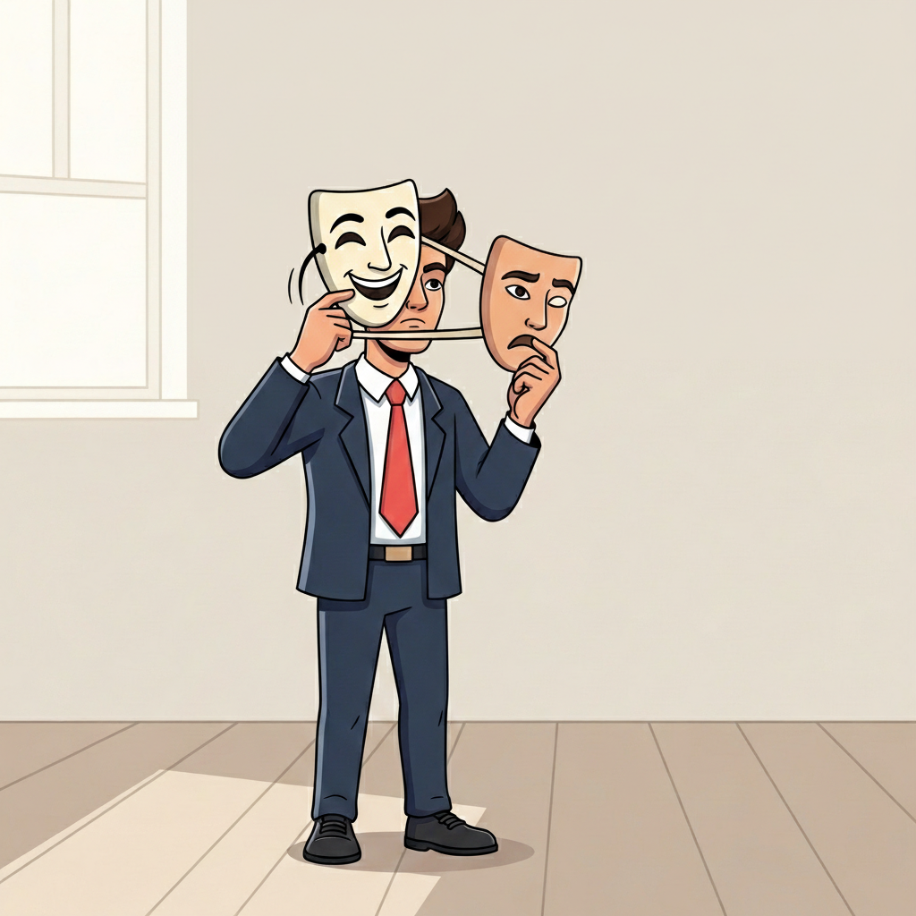 그의 겉보기 자신감은 무대에 오르는 순간 녹아버렸다.