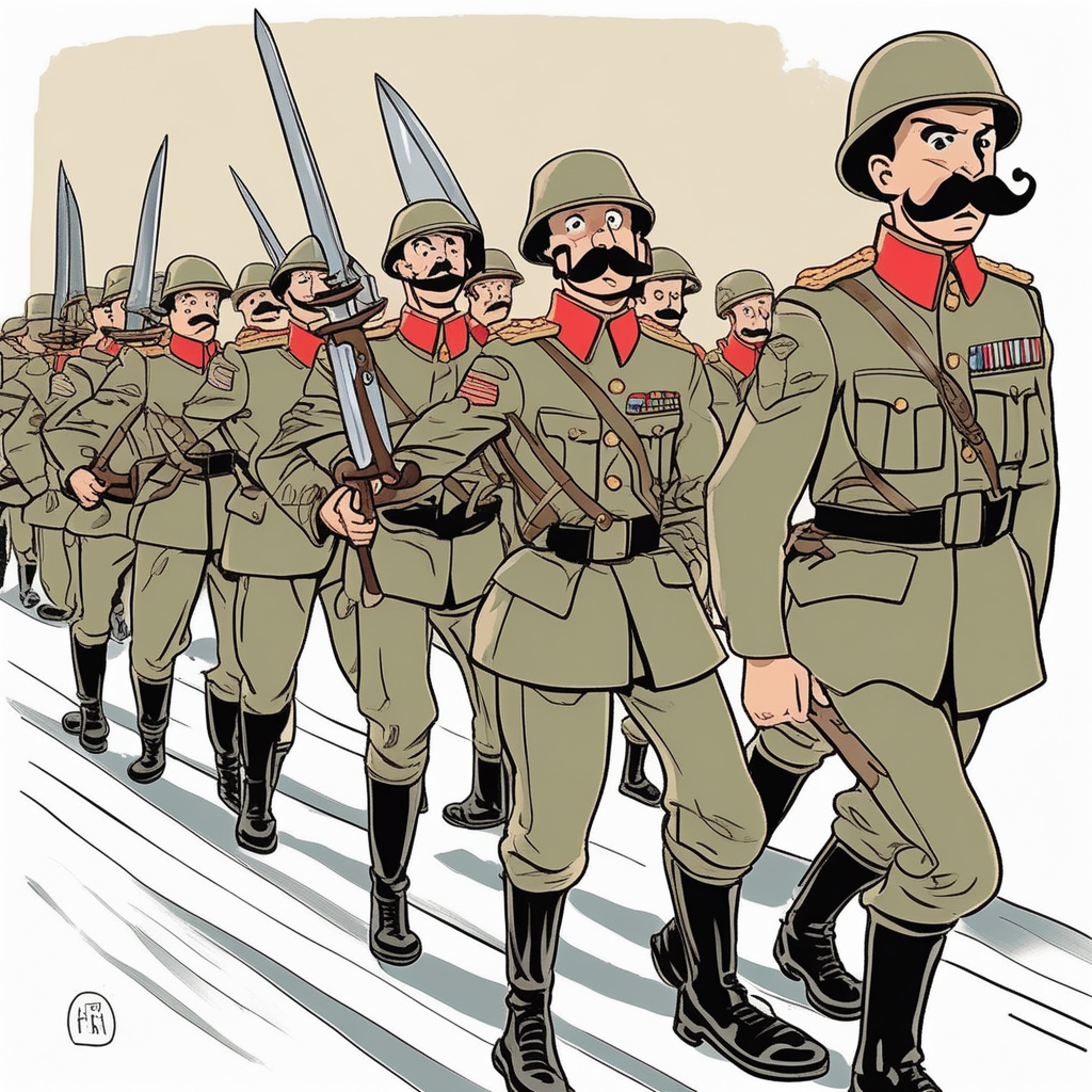 "His paramilitary uniform looked impressive until he tripped over his own boots during the parade."