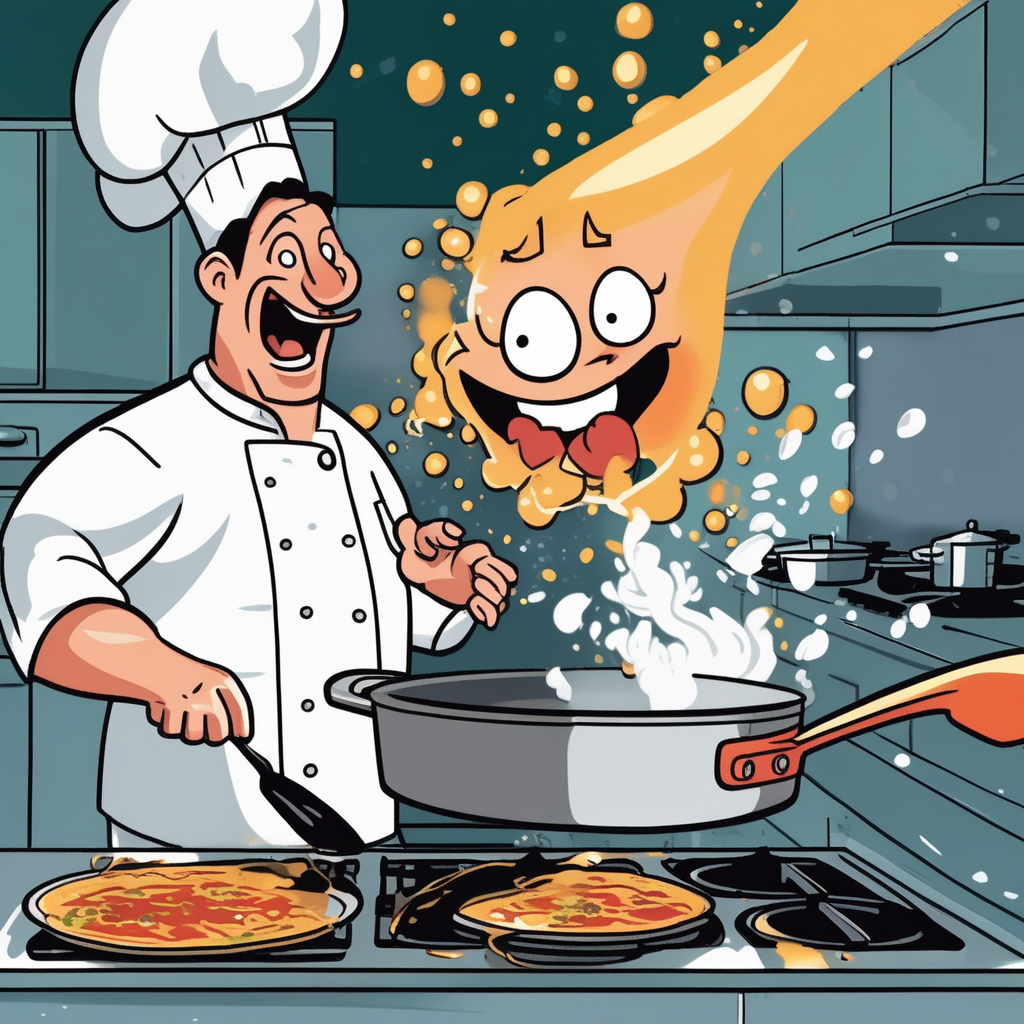 Frying pan sizzling non-stop, just like endless prattling!