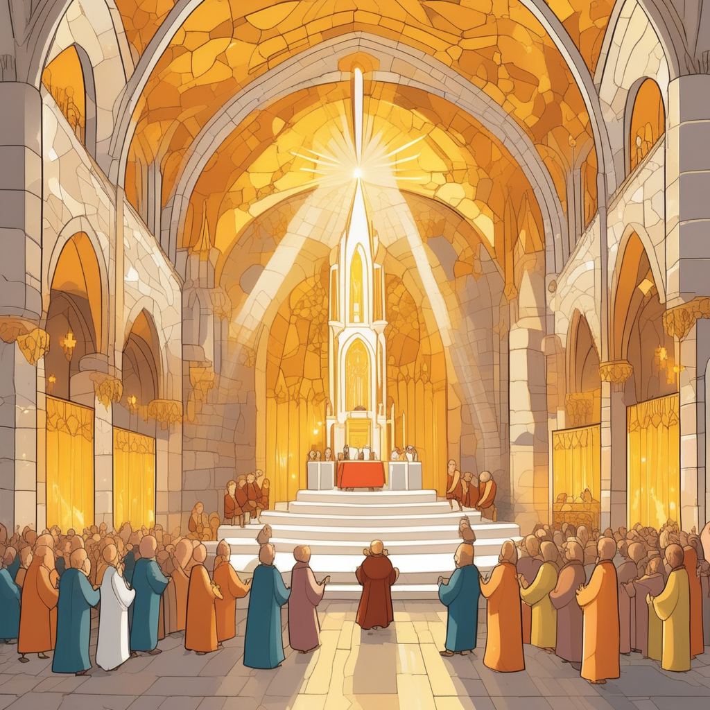 다공성 돌벽 사이로 빛이 스며들어, 화려한 합창단이 아름다운 노래를!