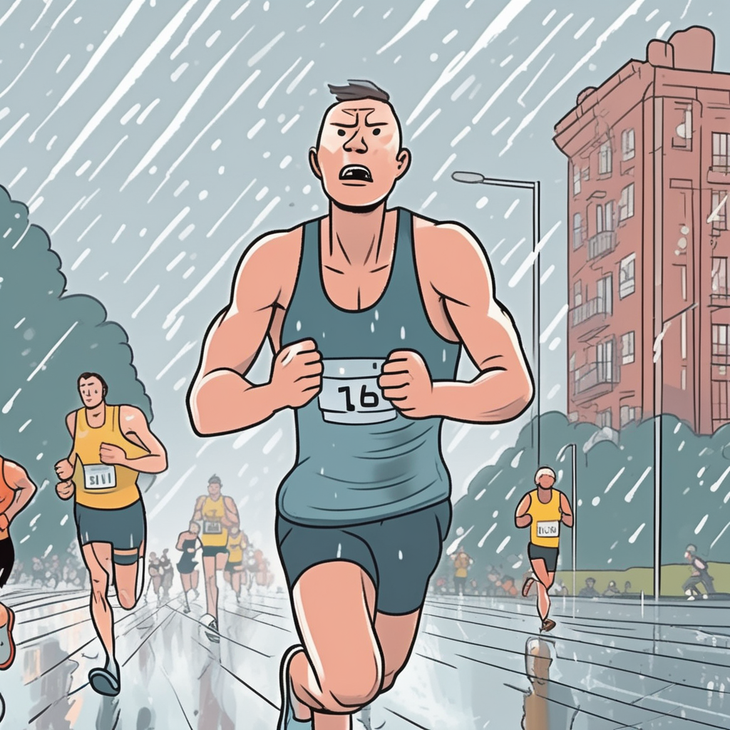 Running relentlessly through rain that falls endlessly, while others wait restlessly.