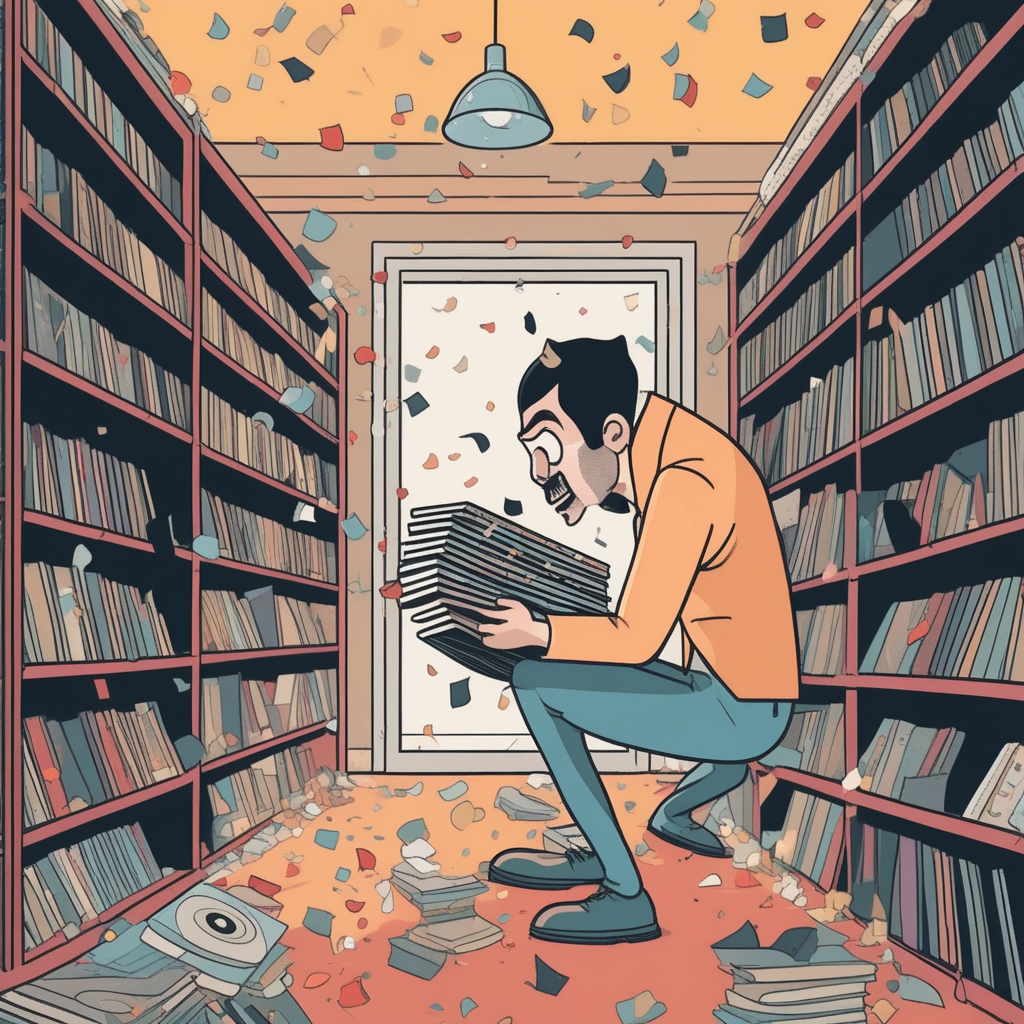 옛 음반들이 먼지의 습격을 받아 흩날린다!