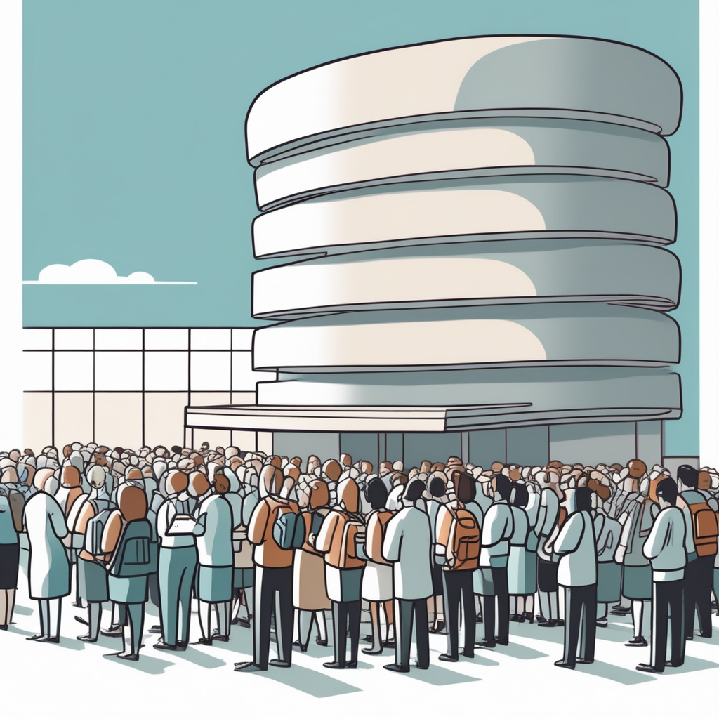 사람(인)들이 롤케이크처럼 줄서서 먼 곳에서 와서 등록하고 있어요!
