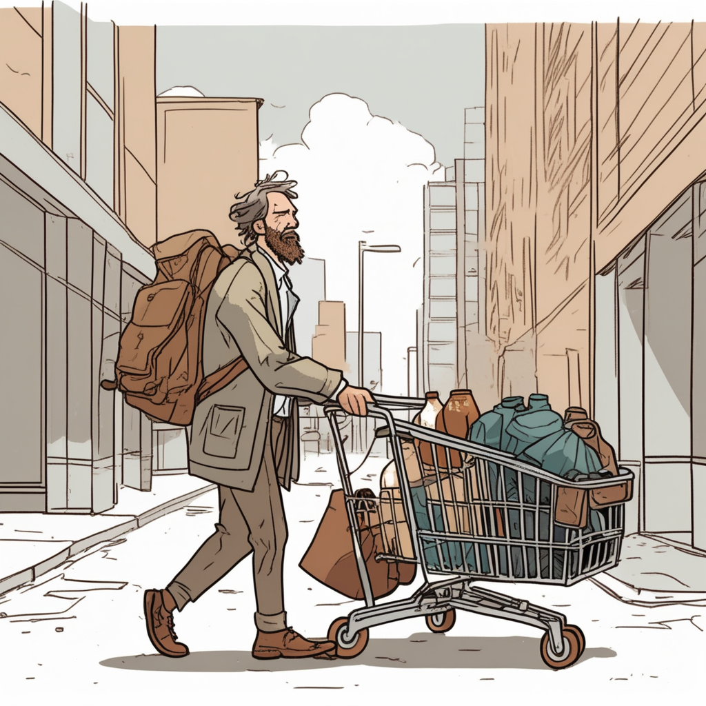 "After losing his job, Tom worried about becoming a vagrant with nowhere to go."