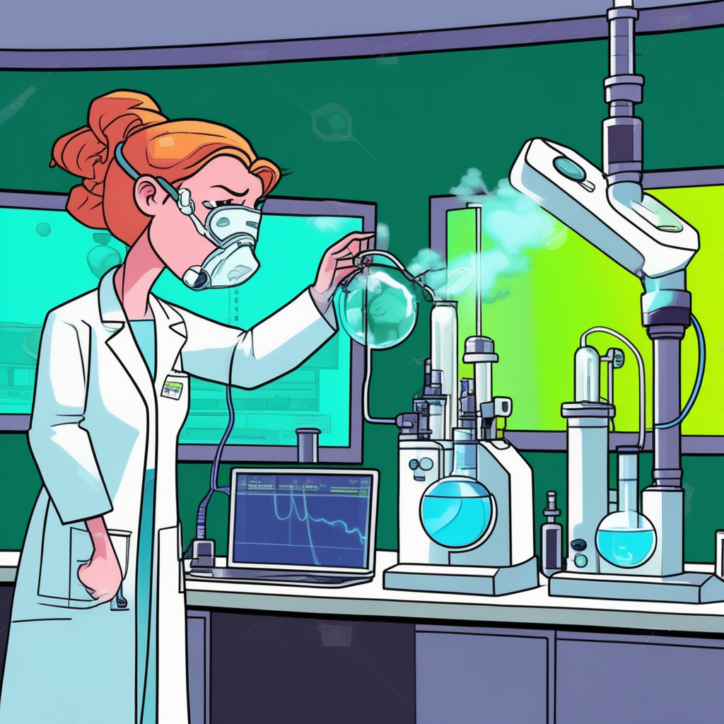 In the laboratory, she makes respiratory gear preparatory!