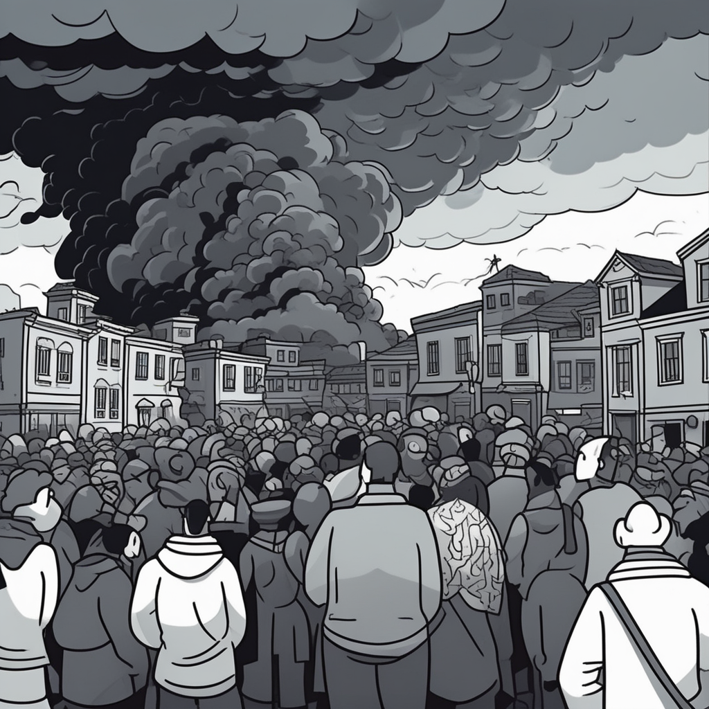 먹구름 가득한 하늘 아래, 사람들로 가득한 광장