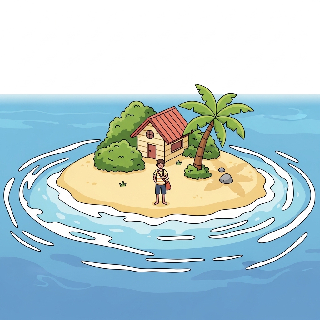 섬의 주민은 파도가 대륙을 둘러싸도 그곳에 남아 산다.