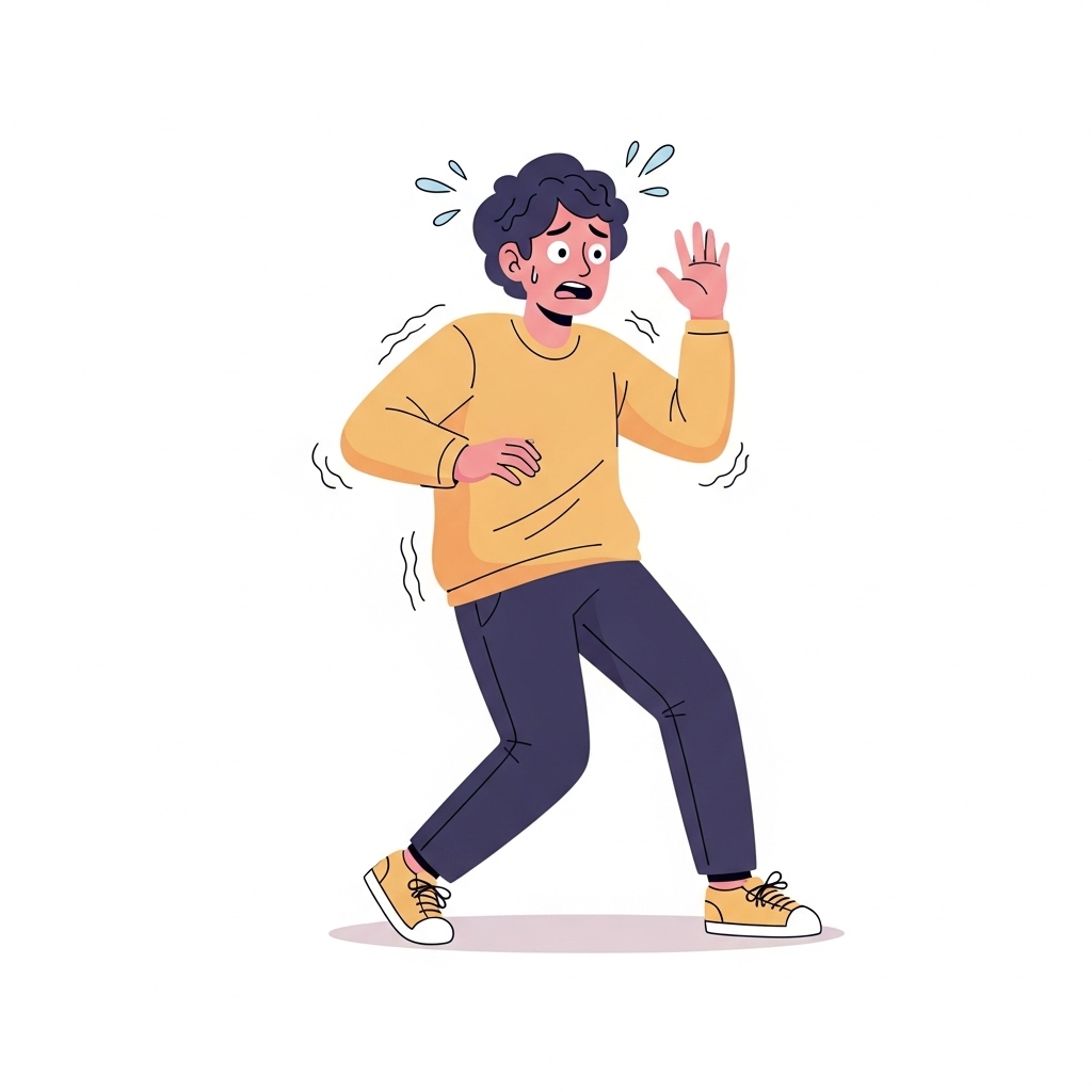 '패닉'은 '패'가 '빨리'를 의미하는 것처럼, '빨리 닉(Nick)아! 도망가자!'라고 외치는 급박한 상황을 상상해보세요. 갑작스러운 위험 앞에서 패닉 상태가 된 사람이 친구에게 빨리 피하자고 소리치는 모습입니다.