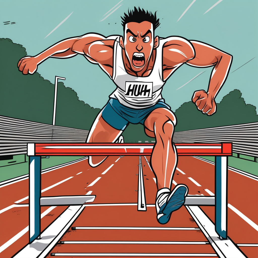 '허들'을 '허~ 들어올려야 넘는다'로 기억하세요. 육상 선수가 '허~' 하고 숨을 고르며 다리를 들어올려 장애물을 넘는 모습을 상상해보세요.