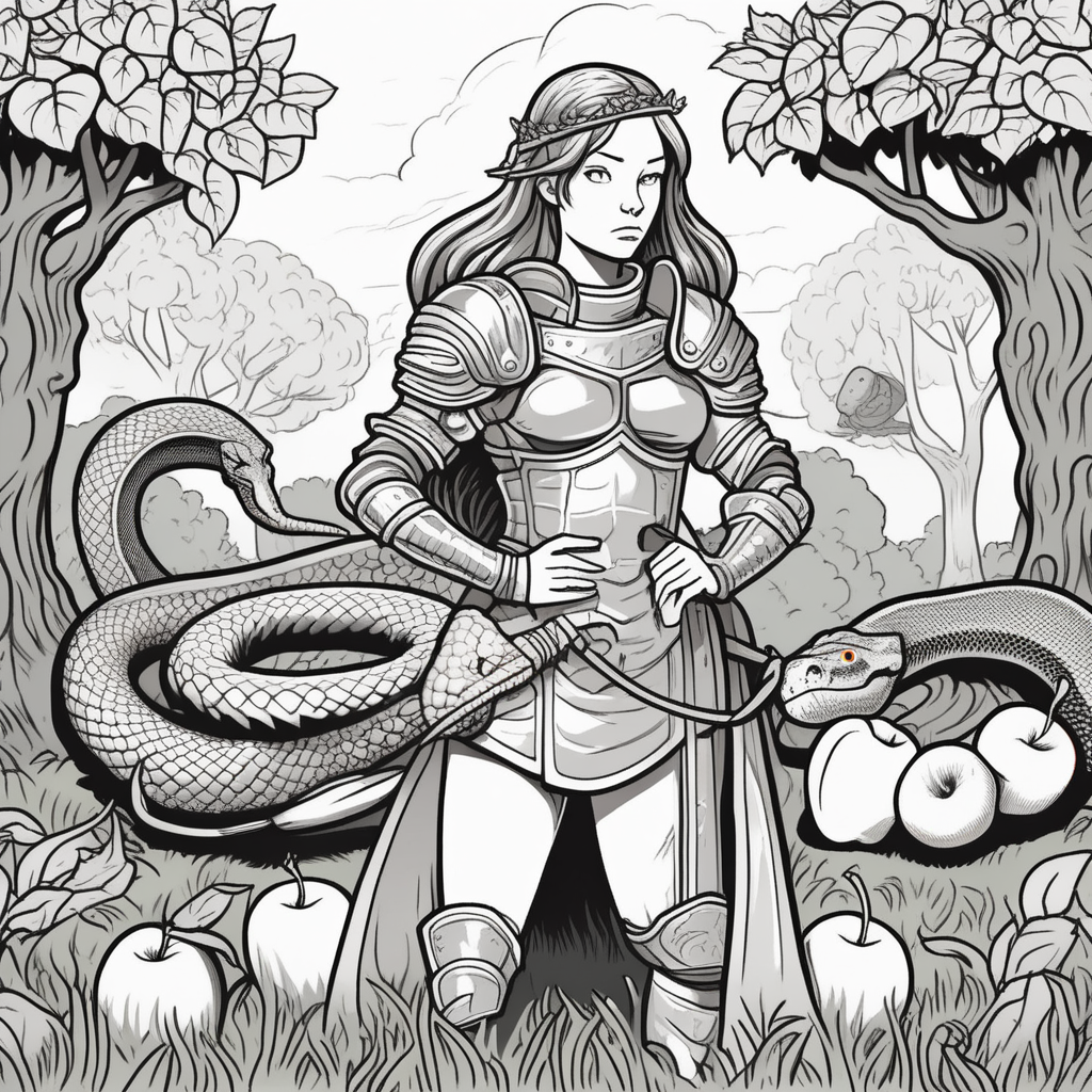 Defense expert Eve! Protecting apples from the snake in a defensive posture!