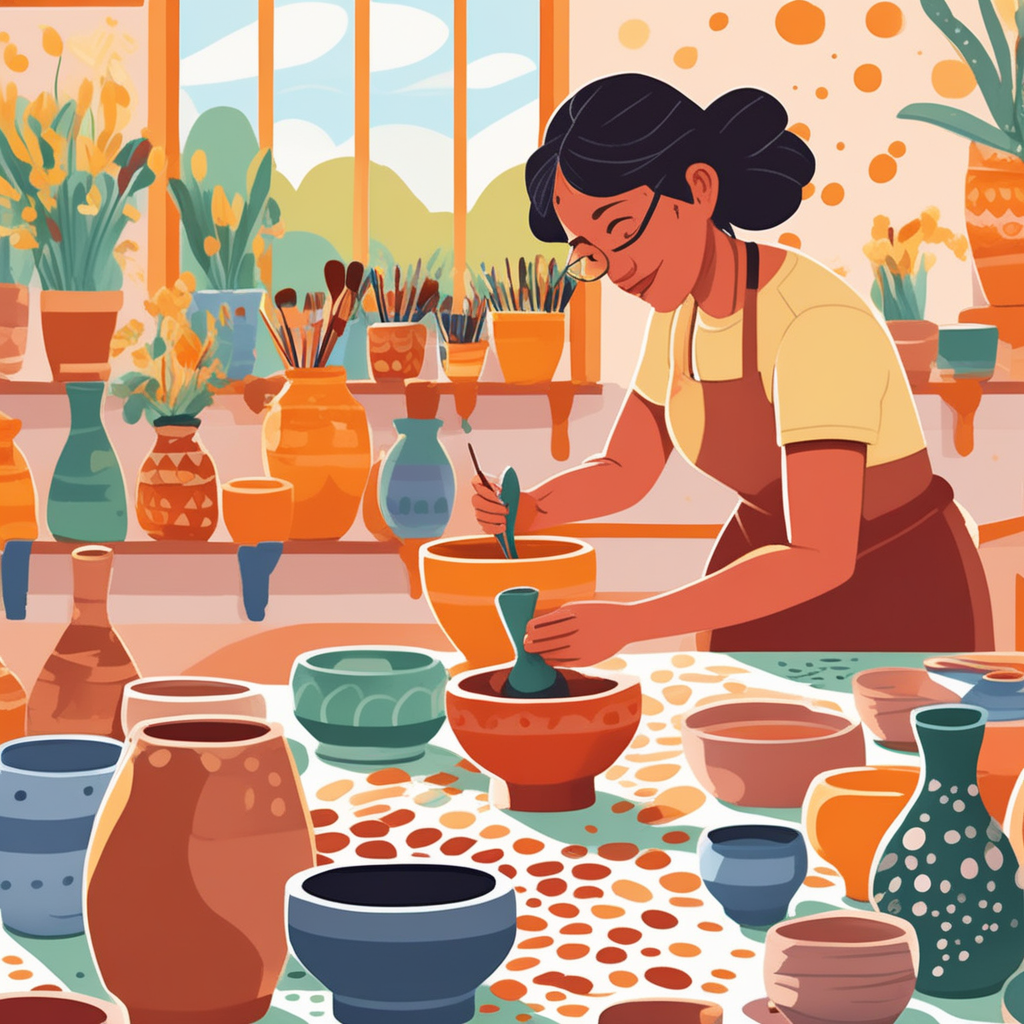 "The artist created a mottled effect by dabbing different colors onto the canvas."