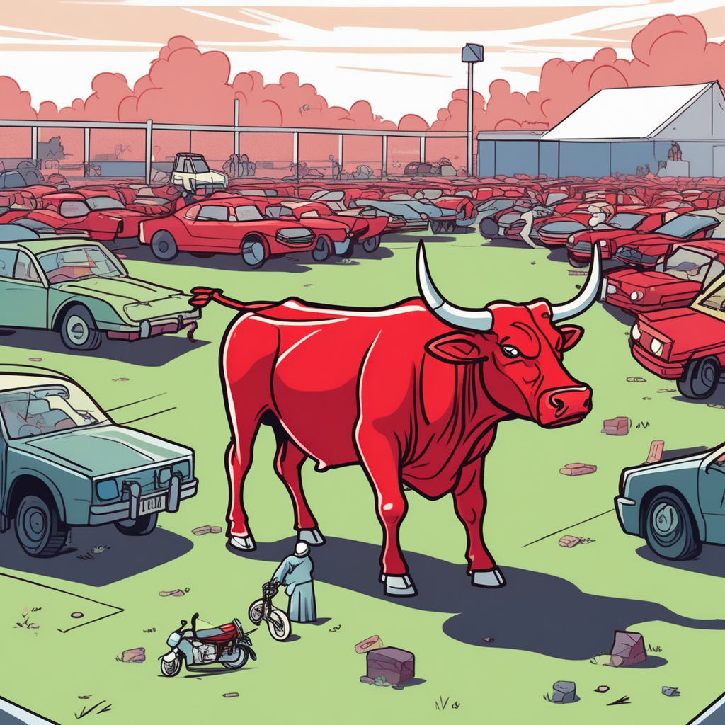 황소가 막은 주차장, 들어갈 틈이 없네!