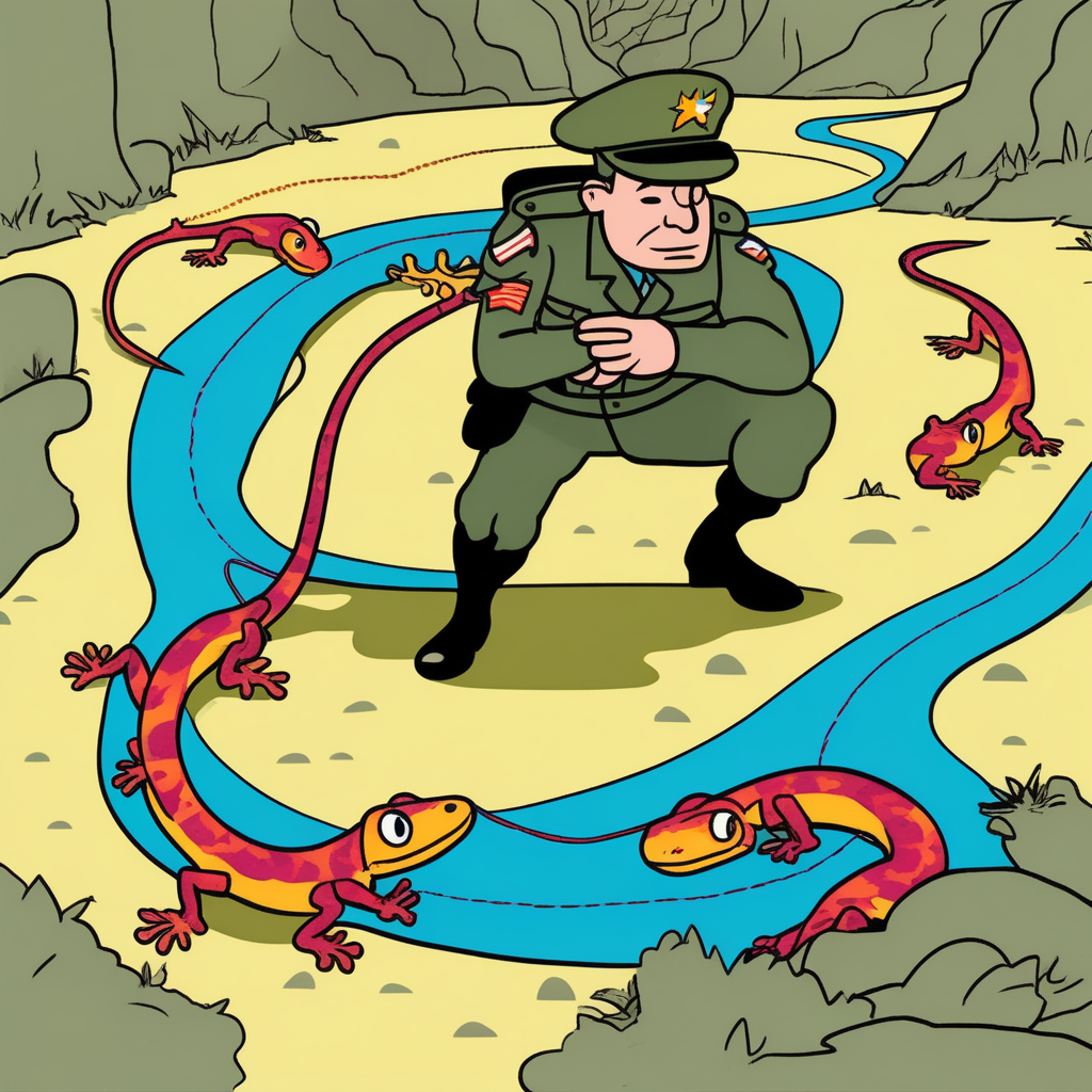 The commander follows where the salamander meanders!