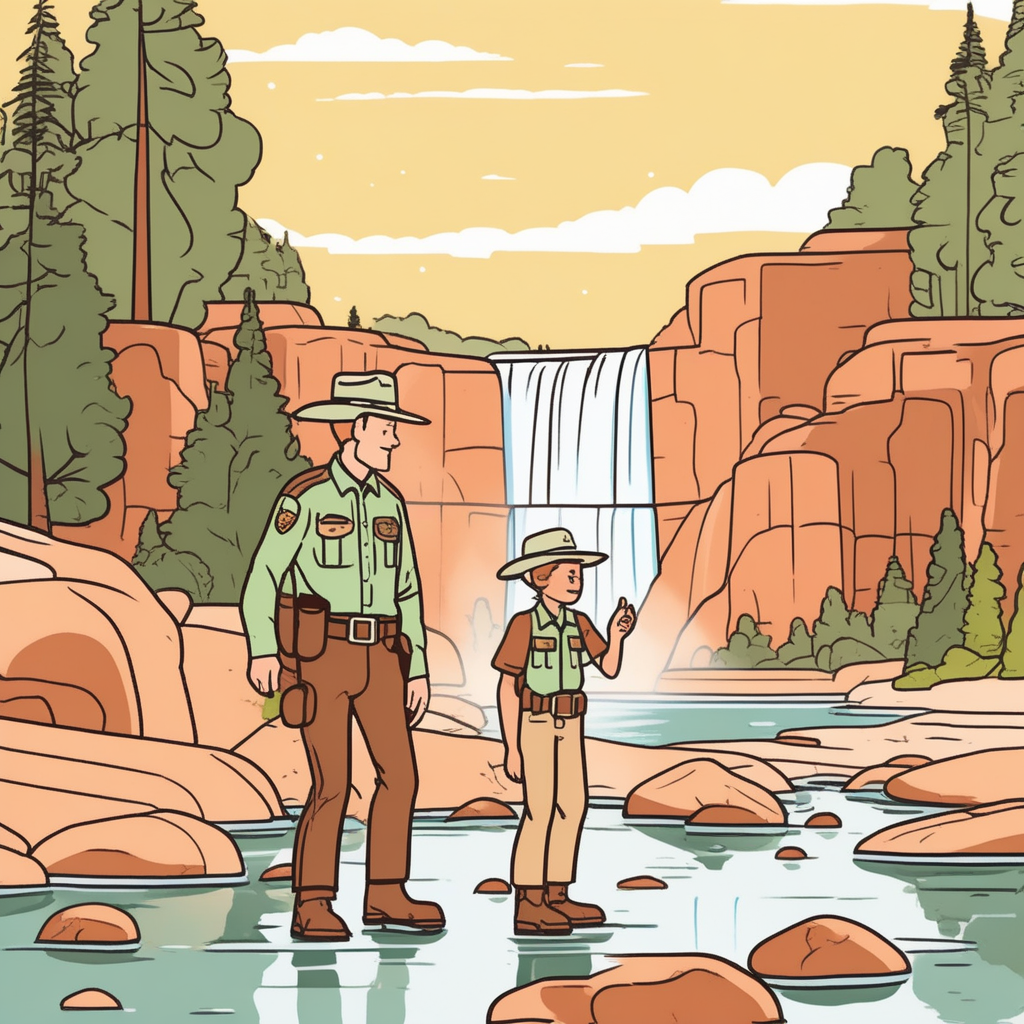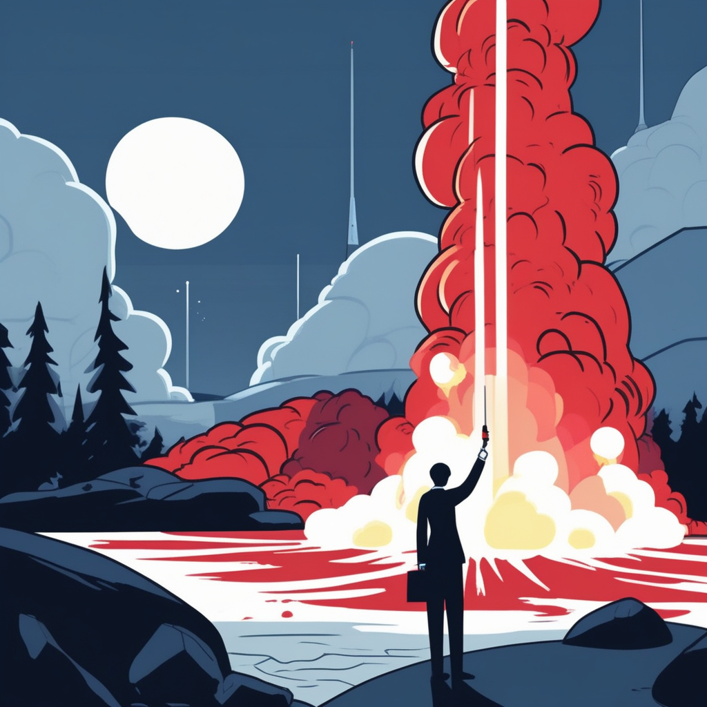 The scientist in her blazer aims her laser at the geyser!