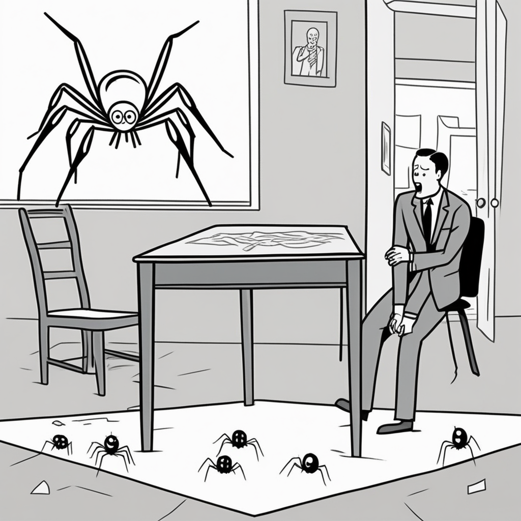"He overreacted to the spider and jumped on a chair screaming."