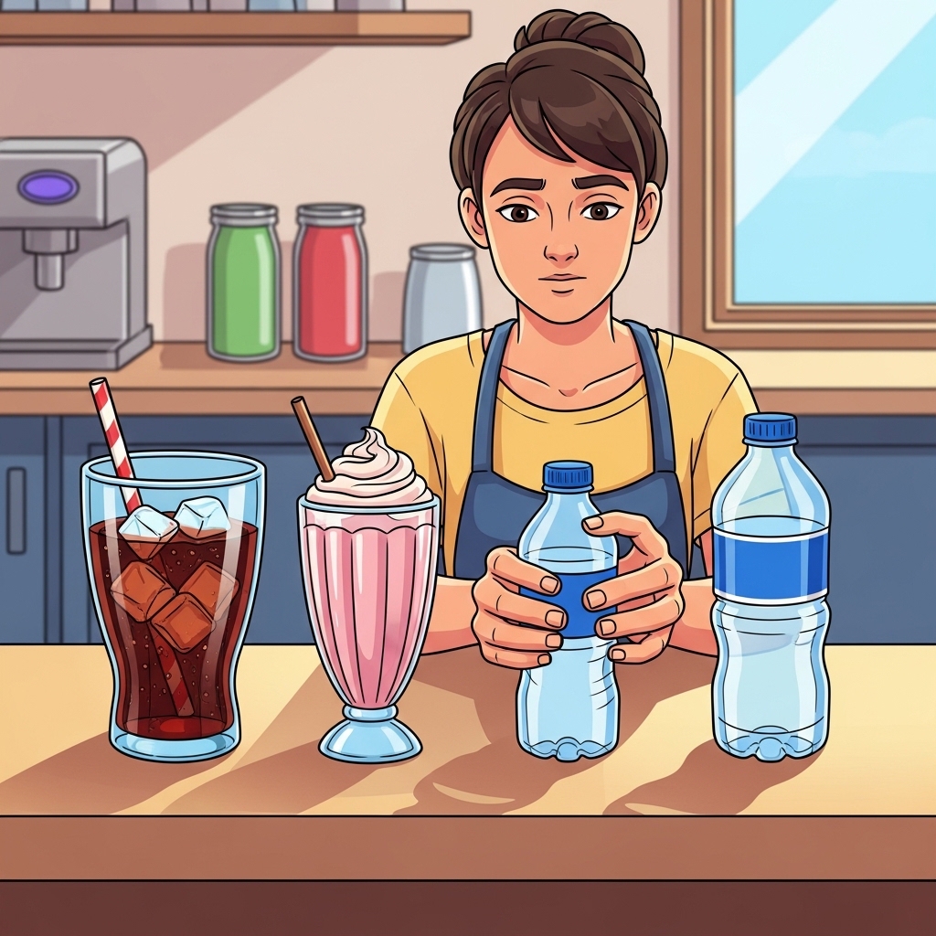 여러 선택지 중에서 물을 선택한다.