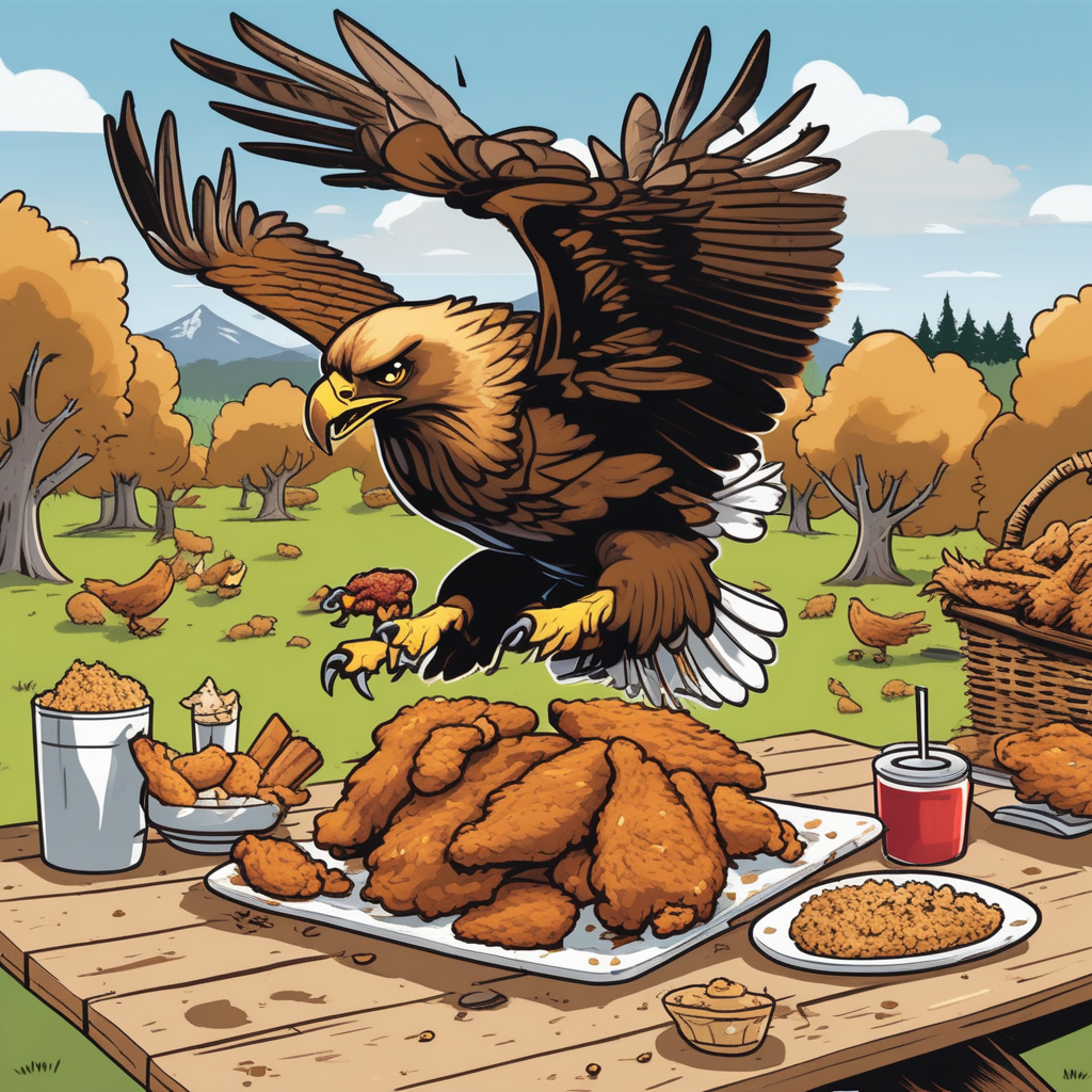 프라이드치킨이 독수리한테 뜯어먹히려고 해! 완전 먹잇감이네!