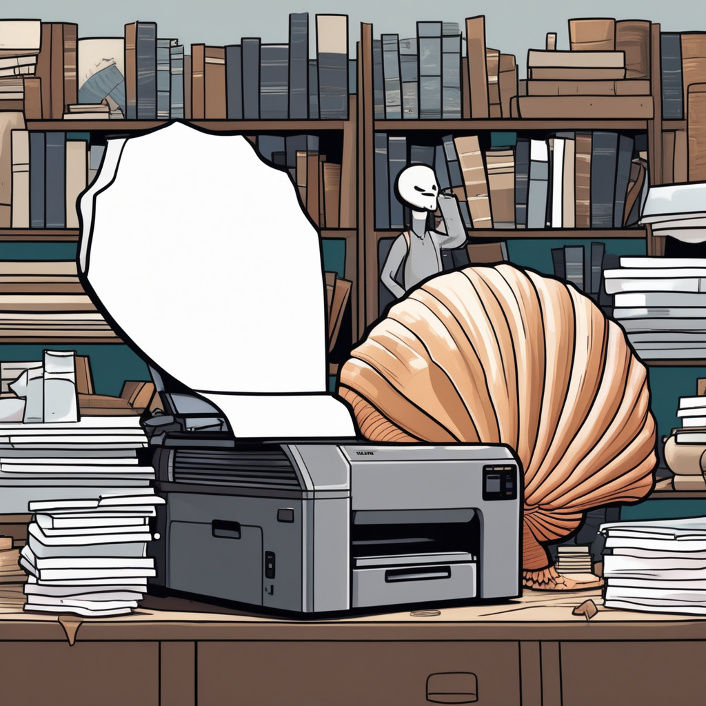 Shell on printer shelf! Careful it doesn't fall!