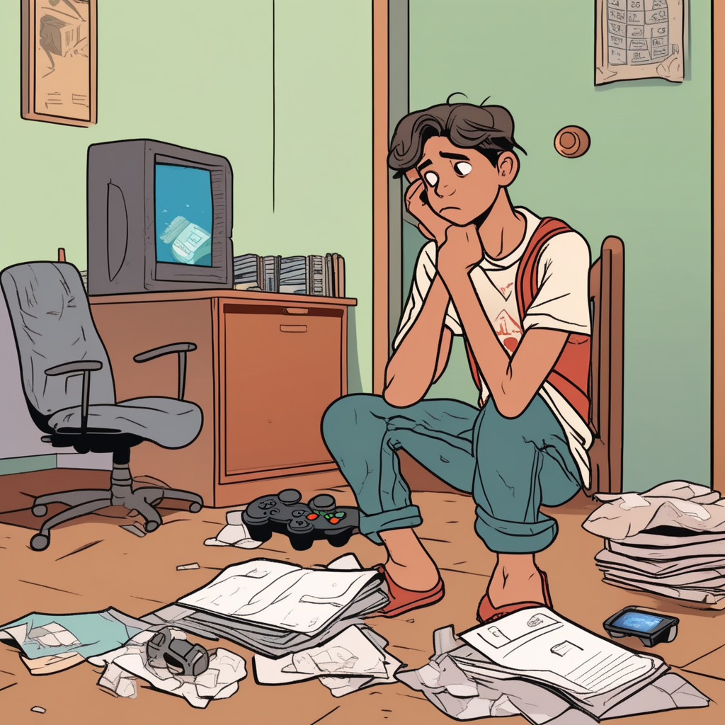 게임만 하고 공부 안 한 걸 후회하는 학생