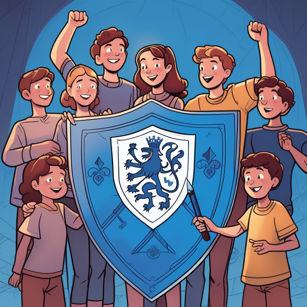 '엠블럼'을 '엠마가 블루 마크를 그렸다'로 연상해보세요. 엠마가 파란색으로 그린 특별한 마크가 바로 우리 가족의 상징(emblem)이 되었다고 상상하면, 상징이나 휘장이라는 뜻을 쉽게 기억할 수 있어요.