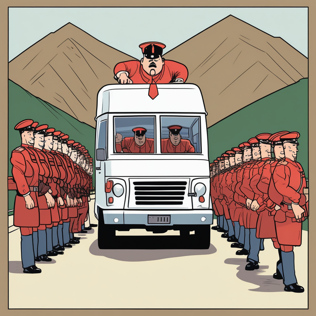 밴 앞에서 가드맨이 당당하게 선봉에 서서 길을 인도한다!