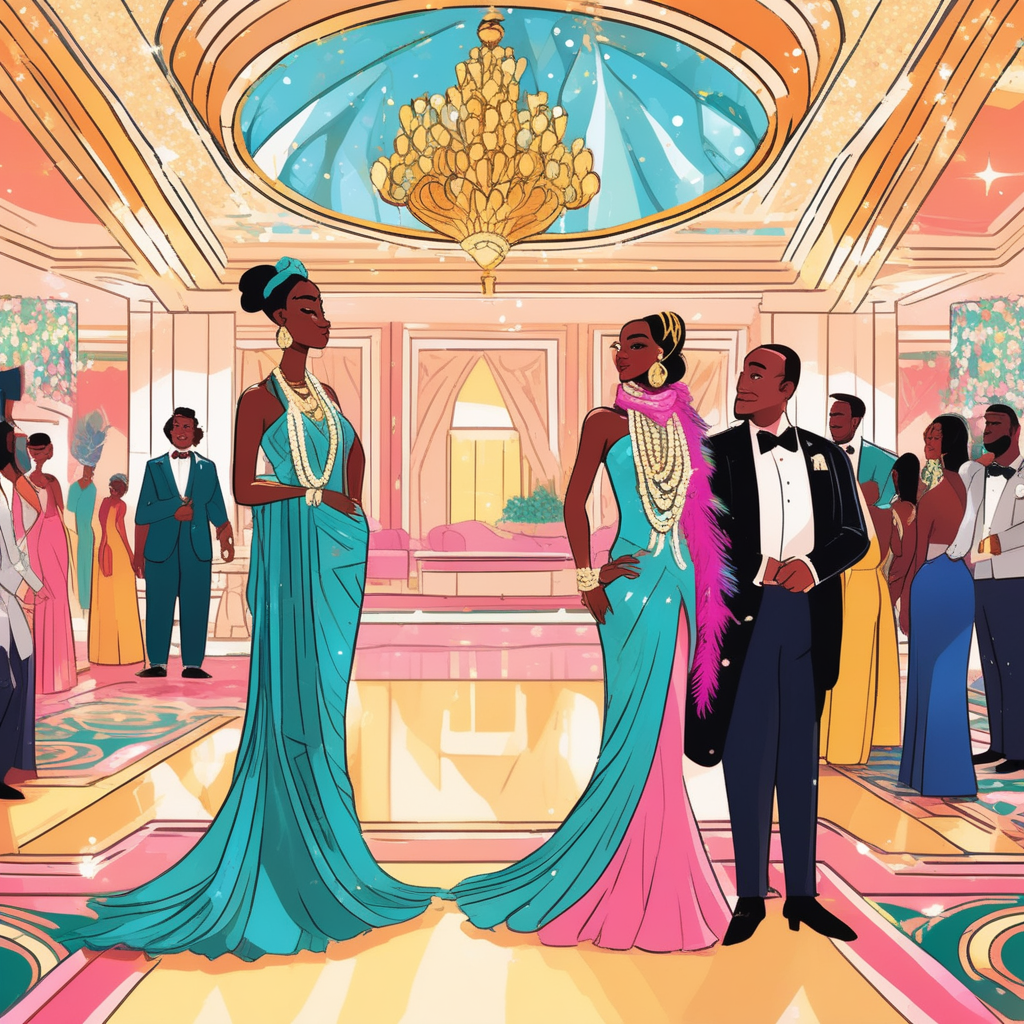 "The nouveau riche family bedizened their mansion with golden statues and crystal chandeliers."