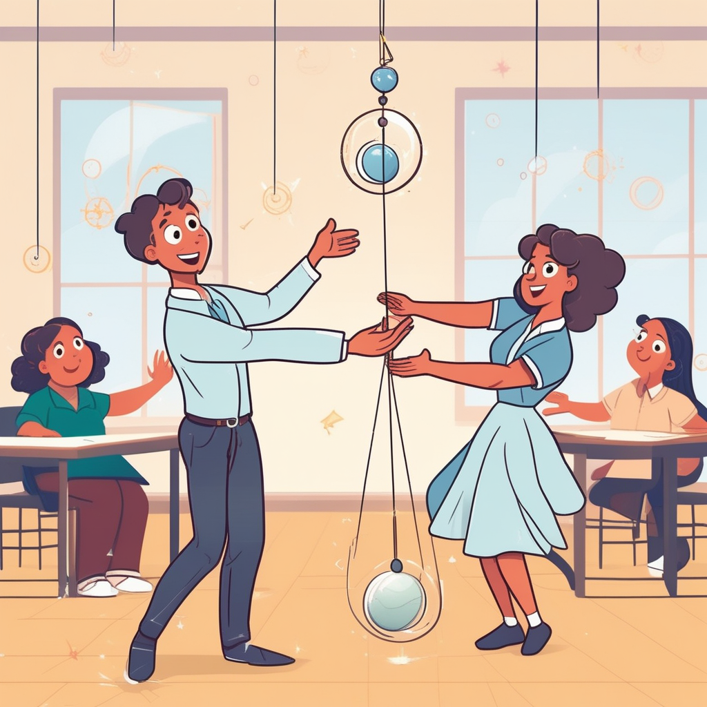 "The physics teacher explained the law of motion using a rolling ball and a lazy student who refused to move from his chair."