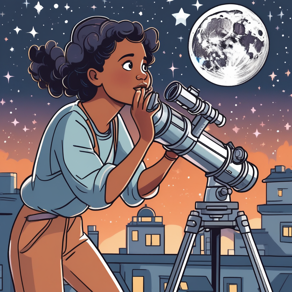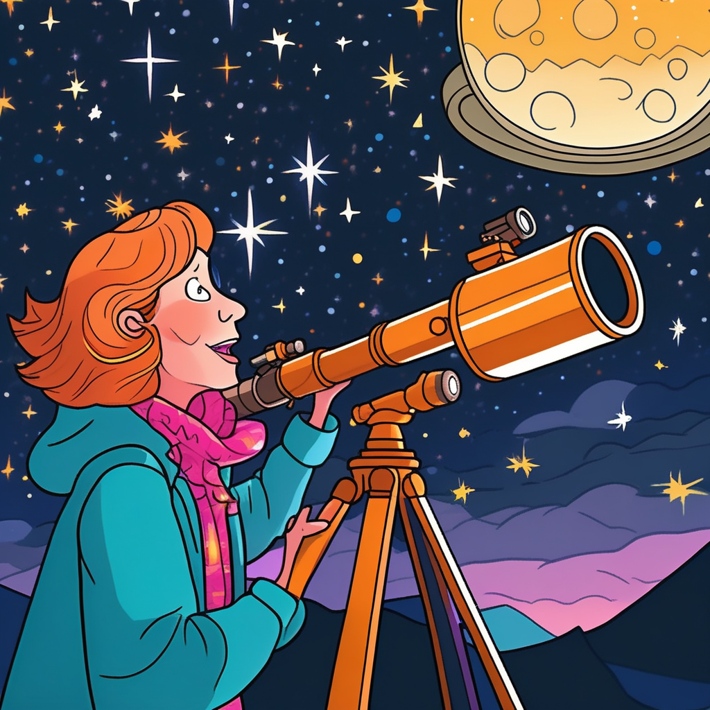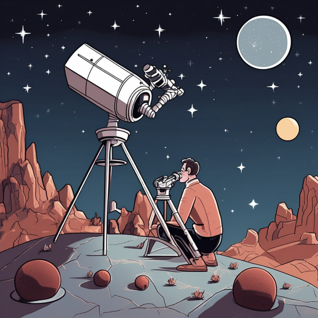 "My neighbor uses his telescope to spy on aliens, but he only finds his cat on the roof."