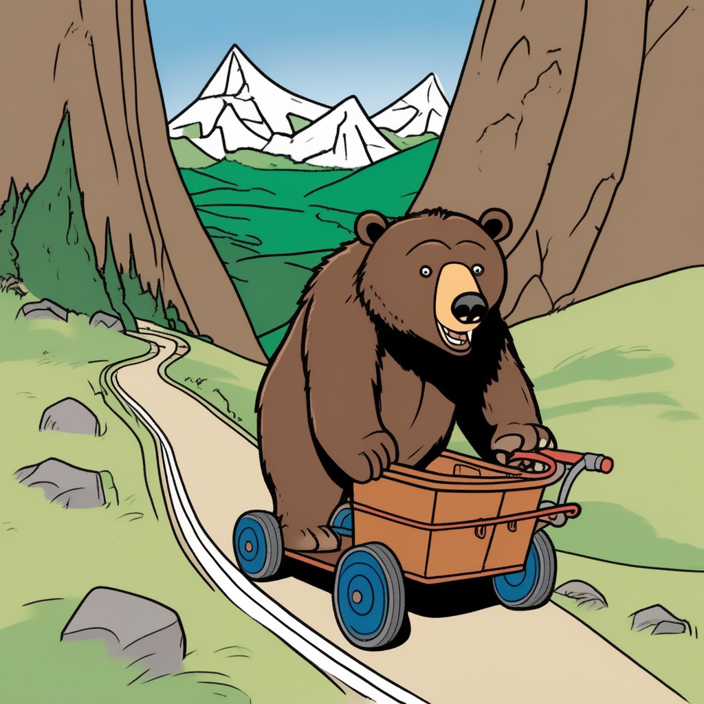 Bear pulling rear car, saying 'Hey!' while making variations in path!