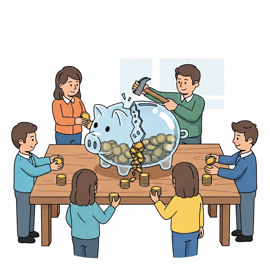 함께 모은 돈을 나누어 받다