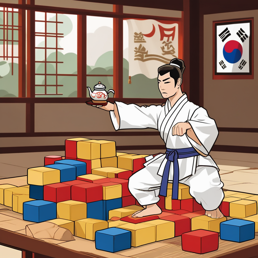 태권도 선수가 블록으로 테이블을 만들었다!