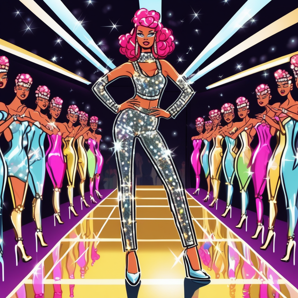Fashion show model going 'Huh? I'm bling-bling!' - so fashionable!