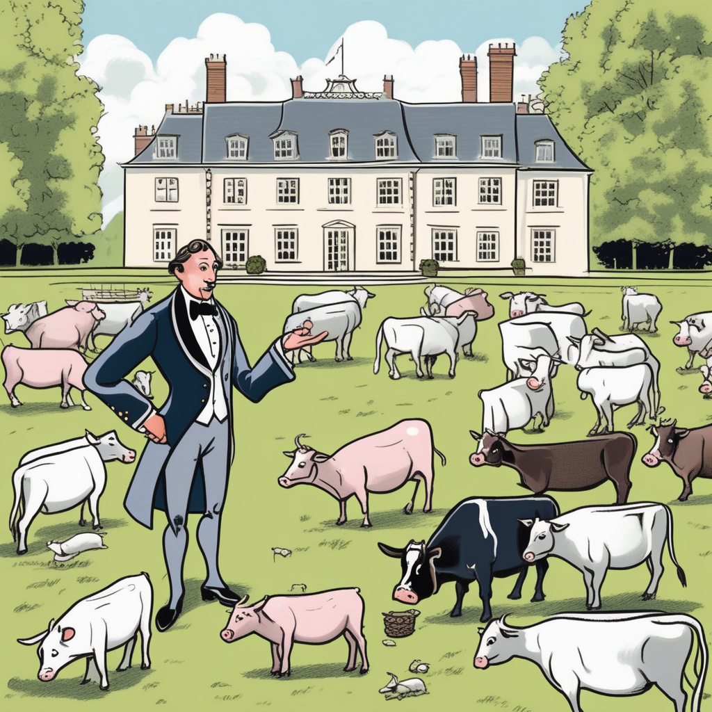 매너 좋은 귀족님이 넓은 장원에서 동물들에게 예의범절을 가르치고 있어요!