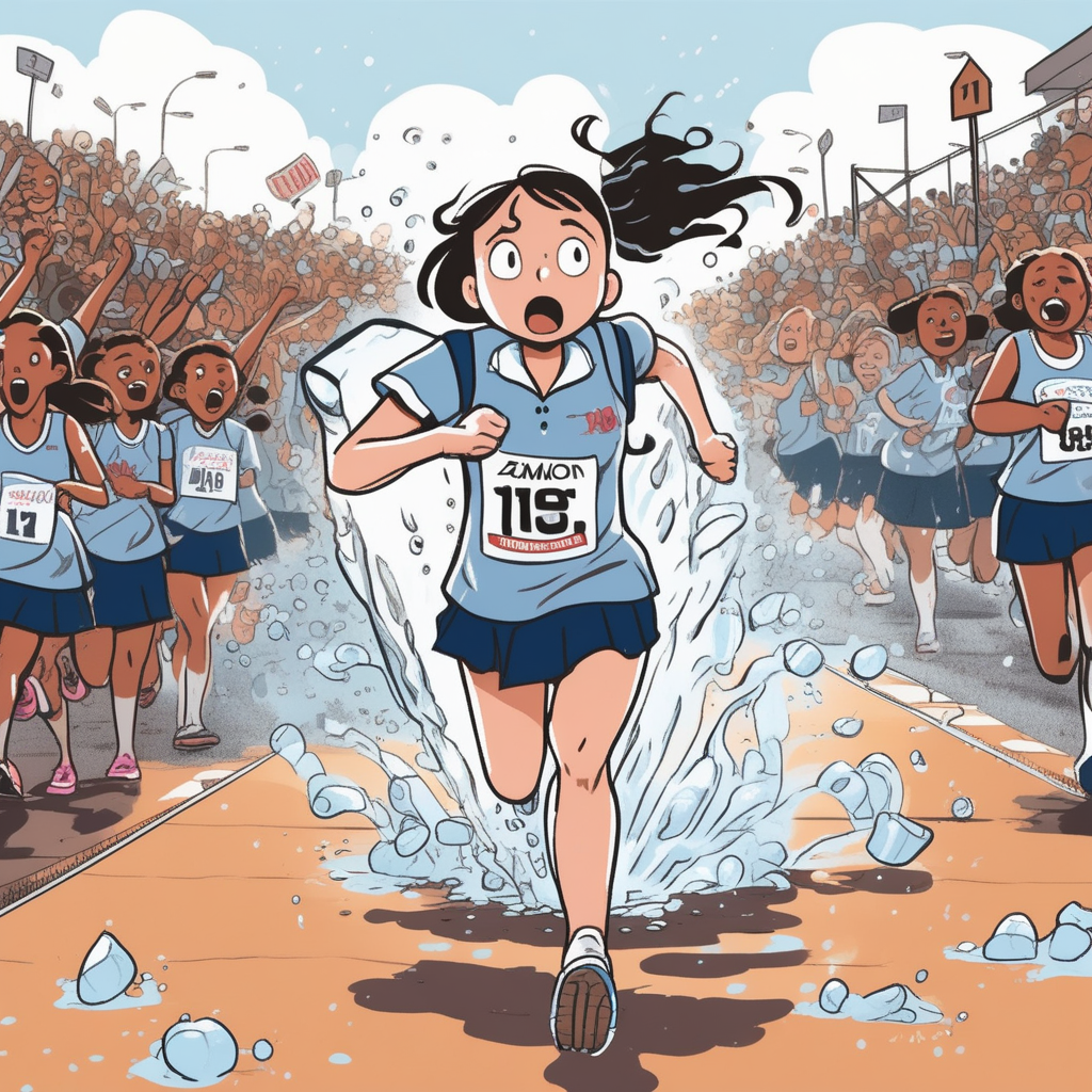 A girl running with a huge gallon jug - GAL + RUN = GALLON!