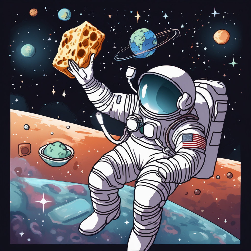 위성에게 정중히 인사하며, 우주 식욕을 채워요!