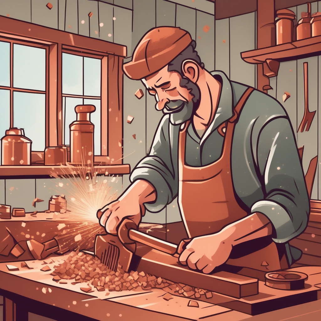 구리를 자르는 장인의 손, 정확한 솜씨로!