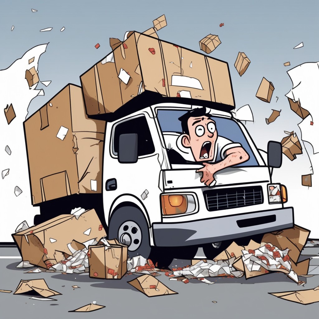 Delivery wrap is totally devastated! Both packaging and truck are dilapidated and tattered!