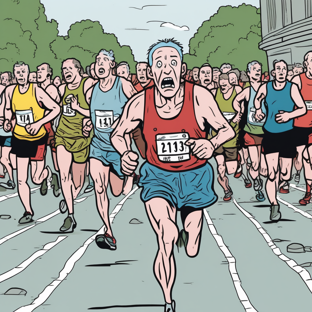 뒤처진 주자, 지친 얼굴로 비틀대며 달린다