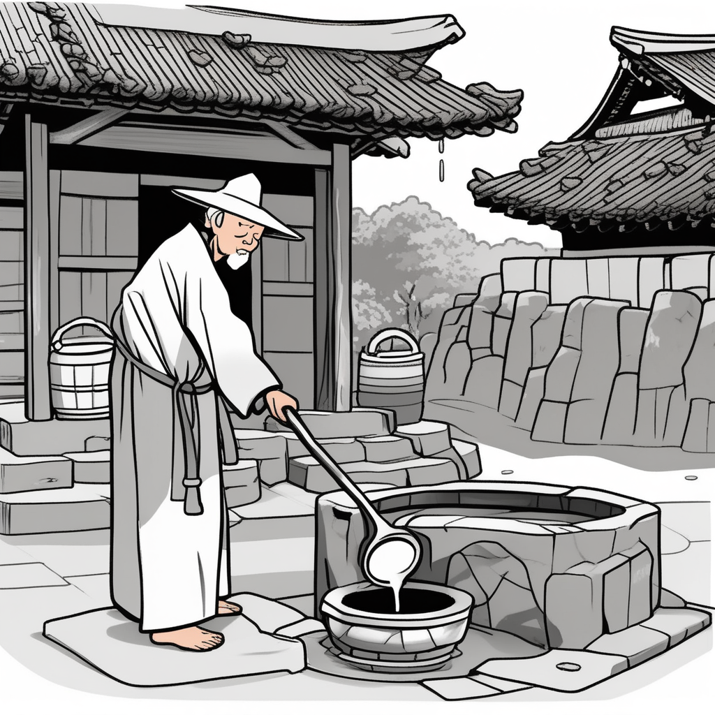 샘에서 퍼낸 한 바가지로 전체 물의 상태를 확인하는 할아버지!