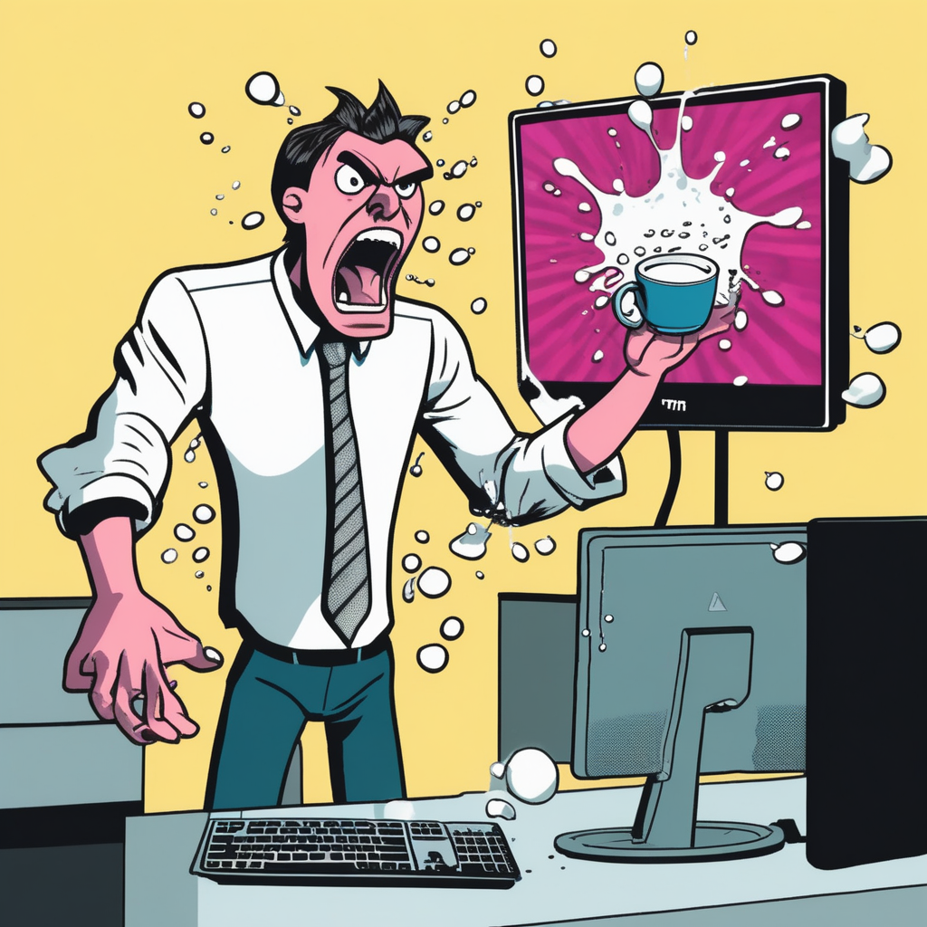 Liquid (acri) splashes on monitor - a bitter, harsh attack!