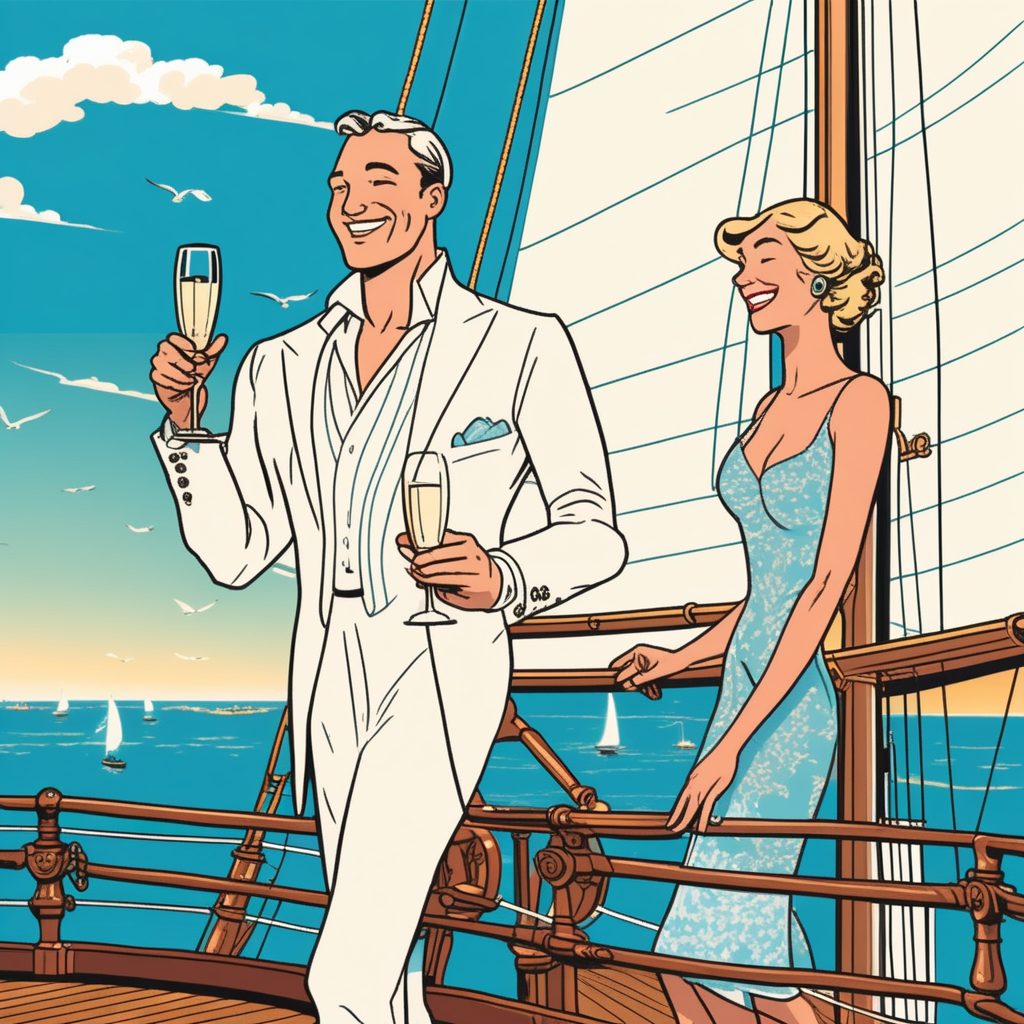 고급 요트로 크루징하는 부부