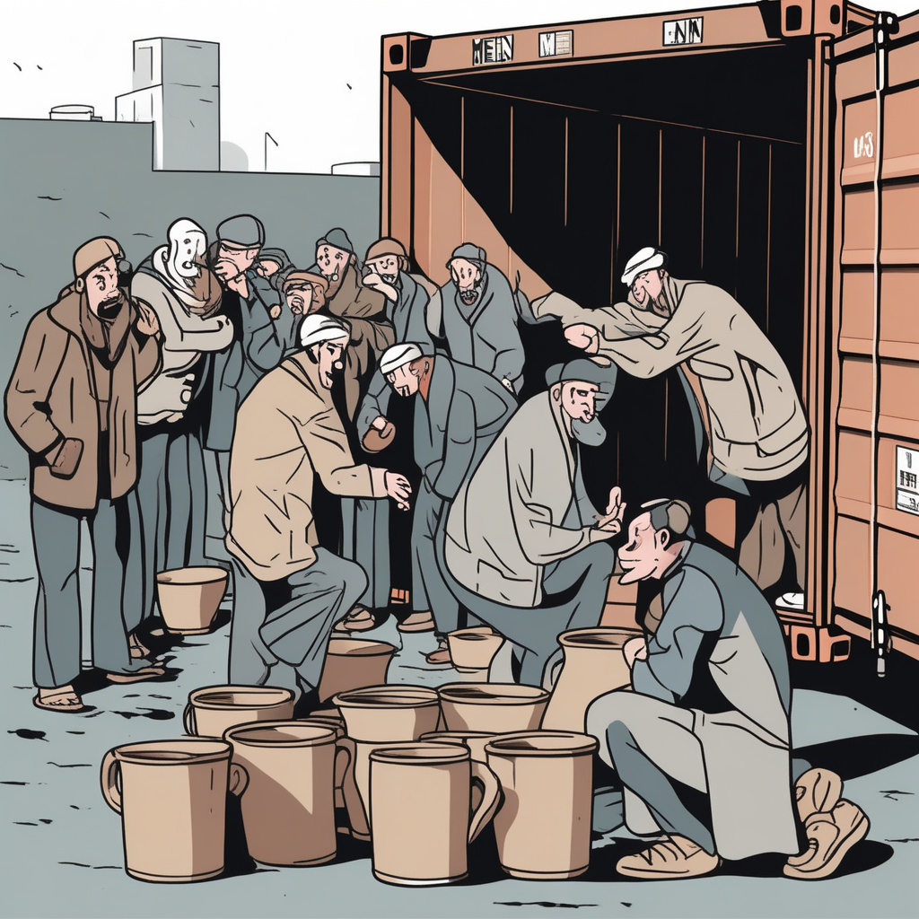 Men begging at the container - mendicant!