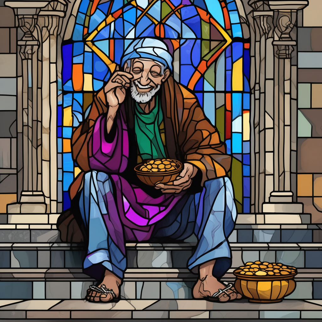 A humble mendicant beneath magnificent arches finds something significant.