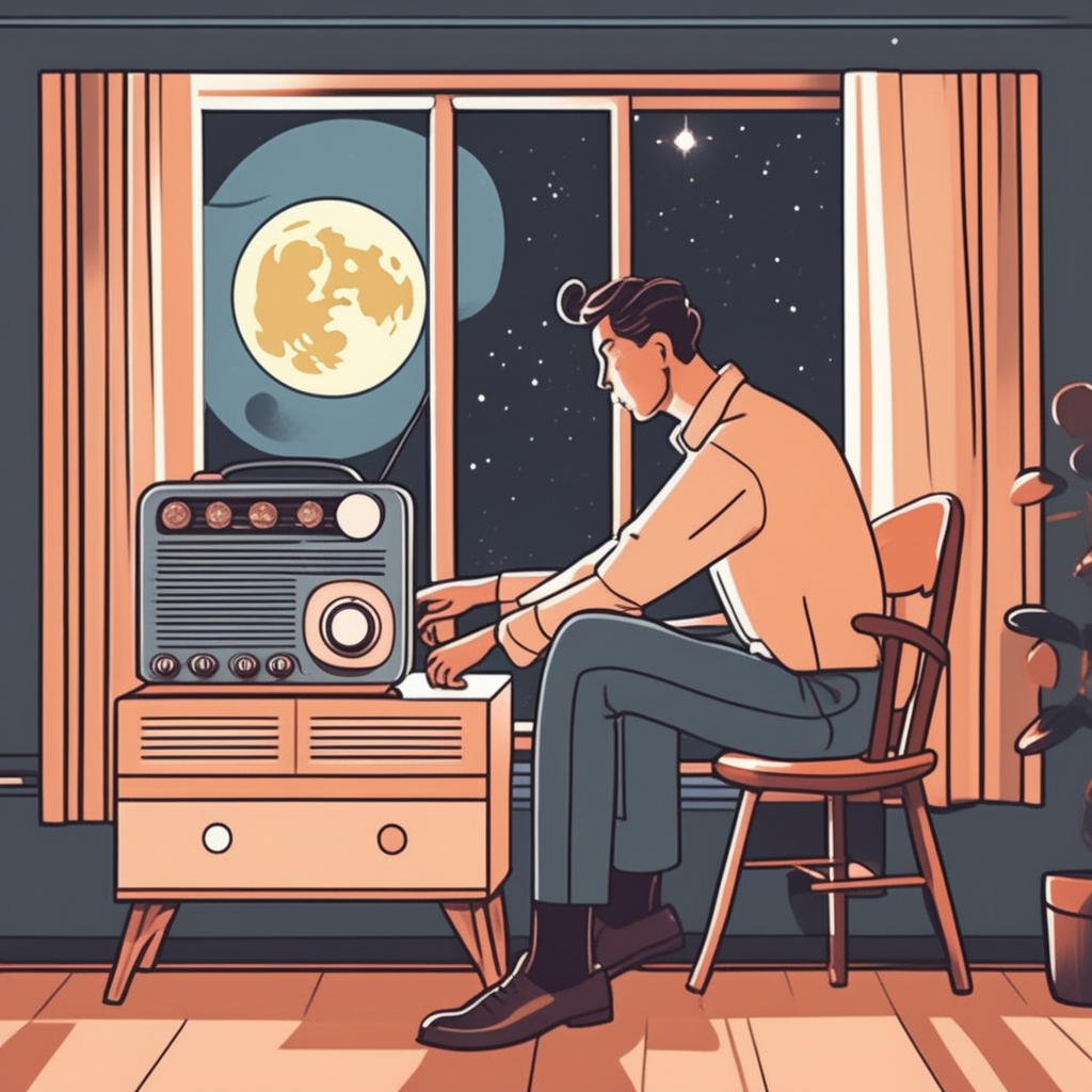 달빛 아래 라디오를 맞추니, 곧 좋은 음악이 흘러나온다!