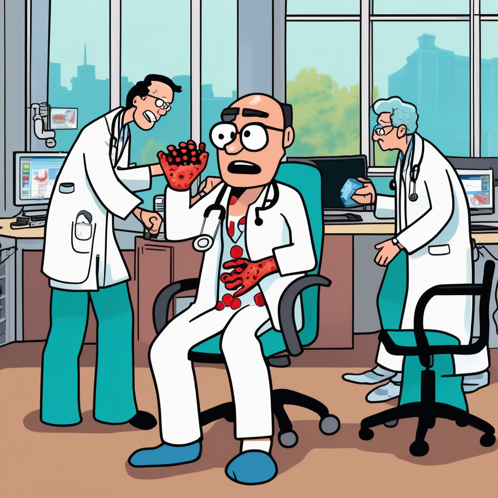 시험 기간 중 스트레스와 과도한 커피로 인해 그의 위에 궤양이 생기기 시작했다.