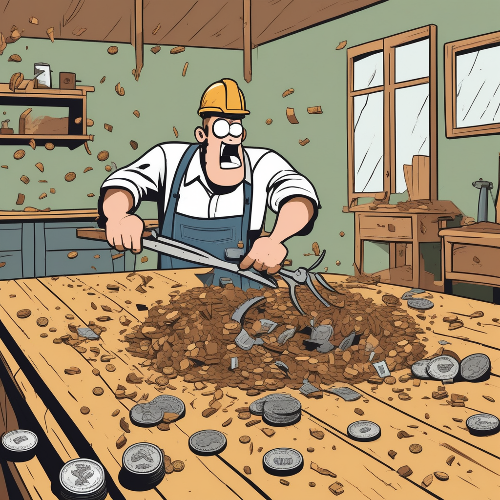 가위가 테이블을 파내고 있어! 돈까지 파내간다!