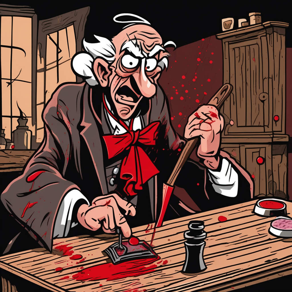 The scrooge's gouge fills with rouge!